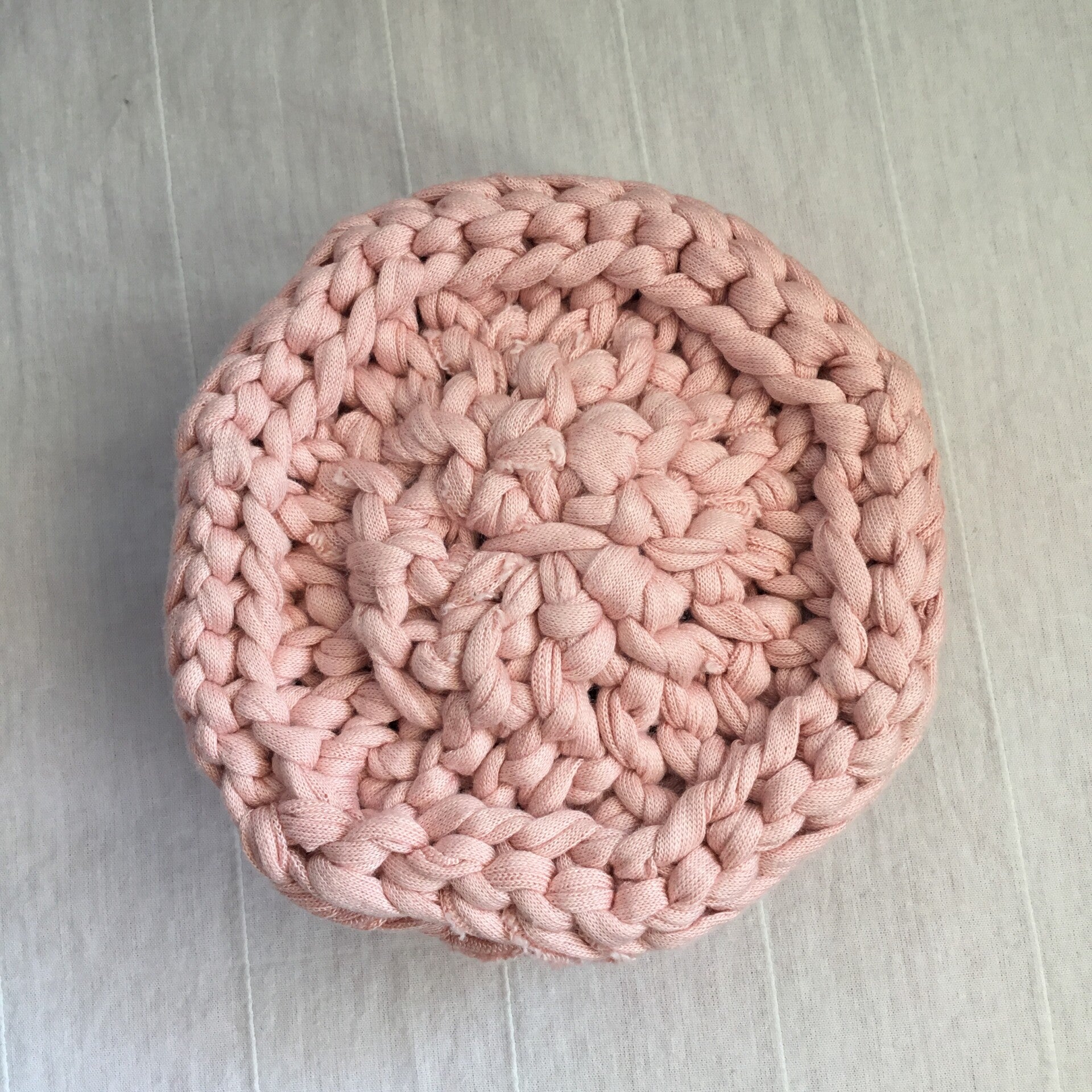Cesto pequeño de trapillo Rosa claro y Magenta.